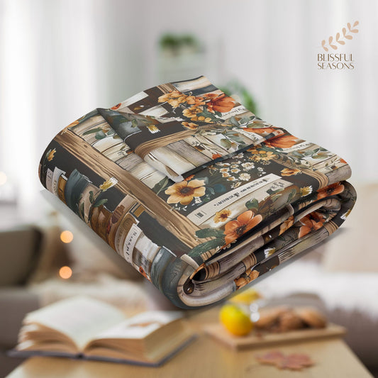 Fleece Book Shelf Blanket - Book Lover Cozy Reading Nook - Vibrant Colors