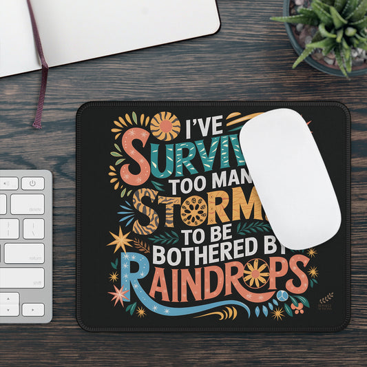 I've Survived Too Many Storms to be Bothered by Raindrops Inspiration Motivation Mousepad for Best Friend Who is Having a Hard Time Thoughtful Heart Break Gift Idea