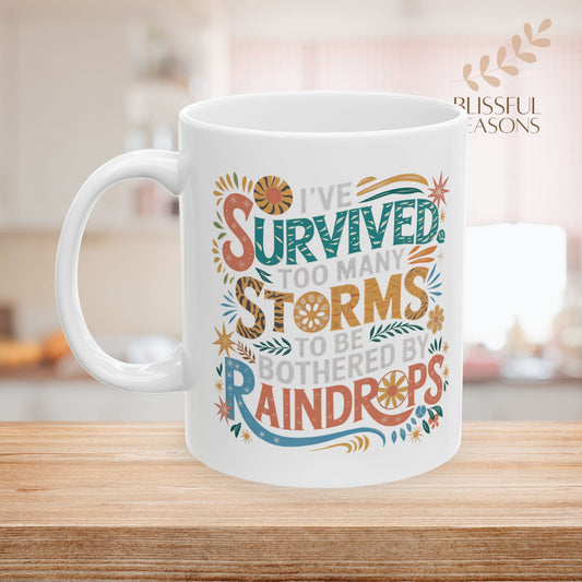 I've Survived Too Many Storms to be Bothered by Raindrops - Inspirational and Motivational 11oz and 15oz Ceramic Mug
